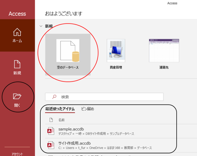 【参考:すでに保存済みのAccessファイルを開く場合】