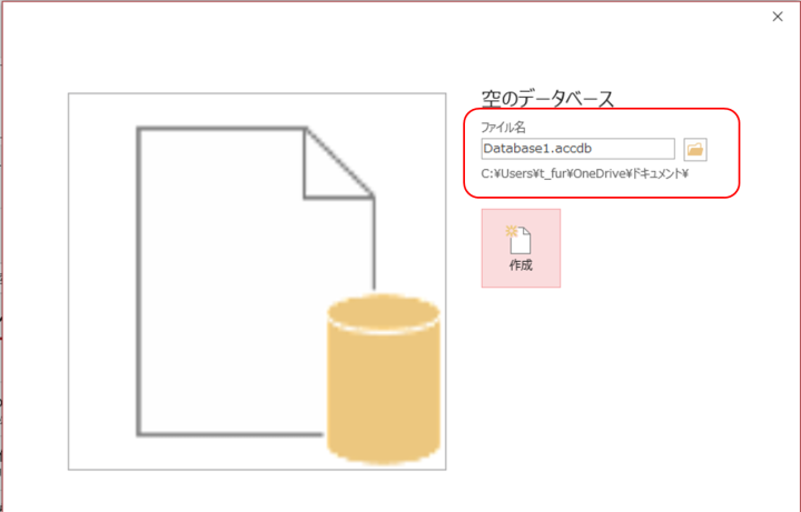 「作成」ボタンをクリックすると、Accessのファイルが作成されます。