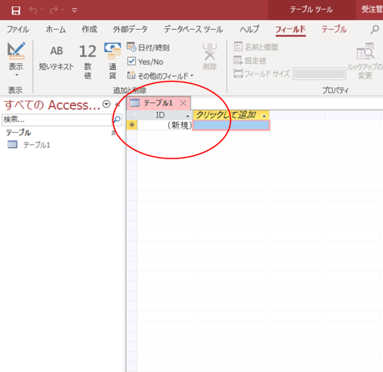 Accessファイルが表示されます(図3)。初期に「テーブル1」というタブが表示されますが、とりあえずは不要なので、タブの閉じるボタン(×)を
