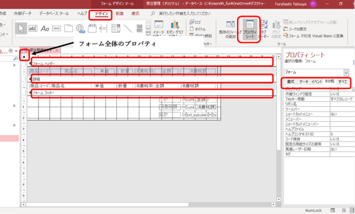 | フォームフッター | 書式 | 背景色 | 背景色の指定 |