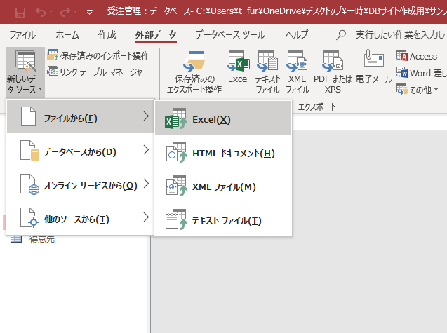 アクセスのテーブルにインポートできるデータはテキストファイルや別のデータベースファイルなどいくつかありますが、ここではExcelデータのインポートを